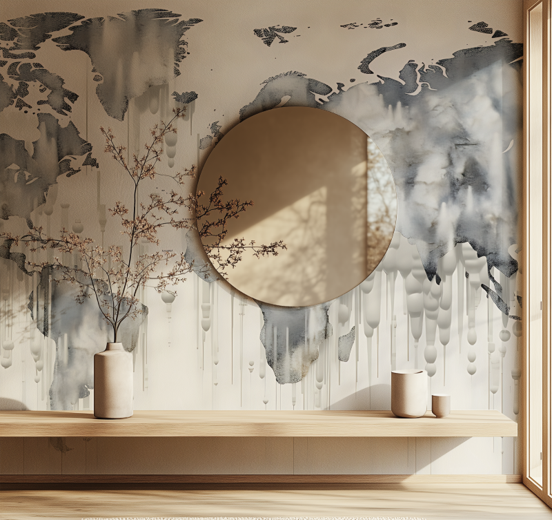 By installing this wallpaper , you will bring a new dimension to your room. The artistic representation of the world map can positively influence the overall atmosphere, making the space more welcoming and inspiring.