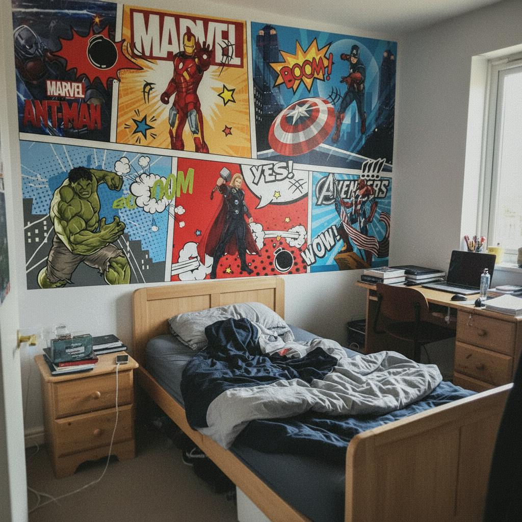 Personalizza la cameretta del tuo bambino con questa carta da parati a tema Marvel con protagonisti gli Avengers!