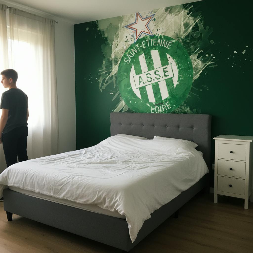 L'installation du papier peint Foot ASSE peut transporter n'importe quel espace vers de nouvelles dimensions. Idéal pour les chambres d'adolescents, les salons sportifs ou même les bureaux de fans, cet élément transforme radicalement l'ambiance de la pièce.