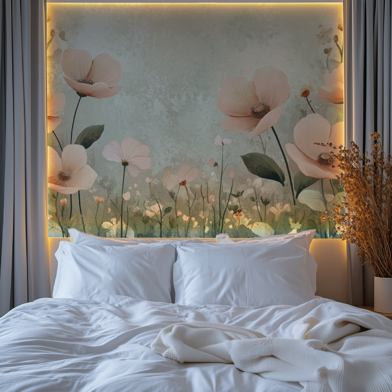 Ce design mêle parfaitement des éléments vintages et modernes, créant une ambiance à la fois nostalgique et contemporaine. Les détails minutieux des fleurs ajoutent de la profondeur et de la dimension à tout espace, devenant ainsi une pièce maîtresse de votre décoration murale.