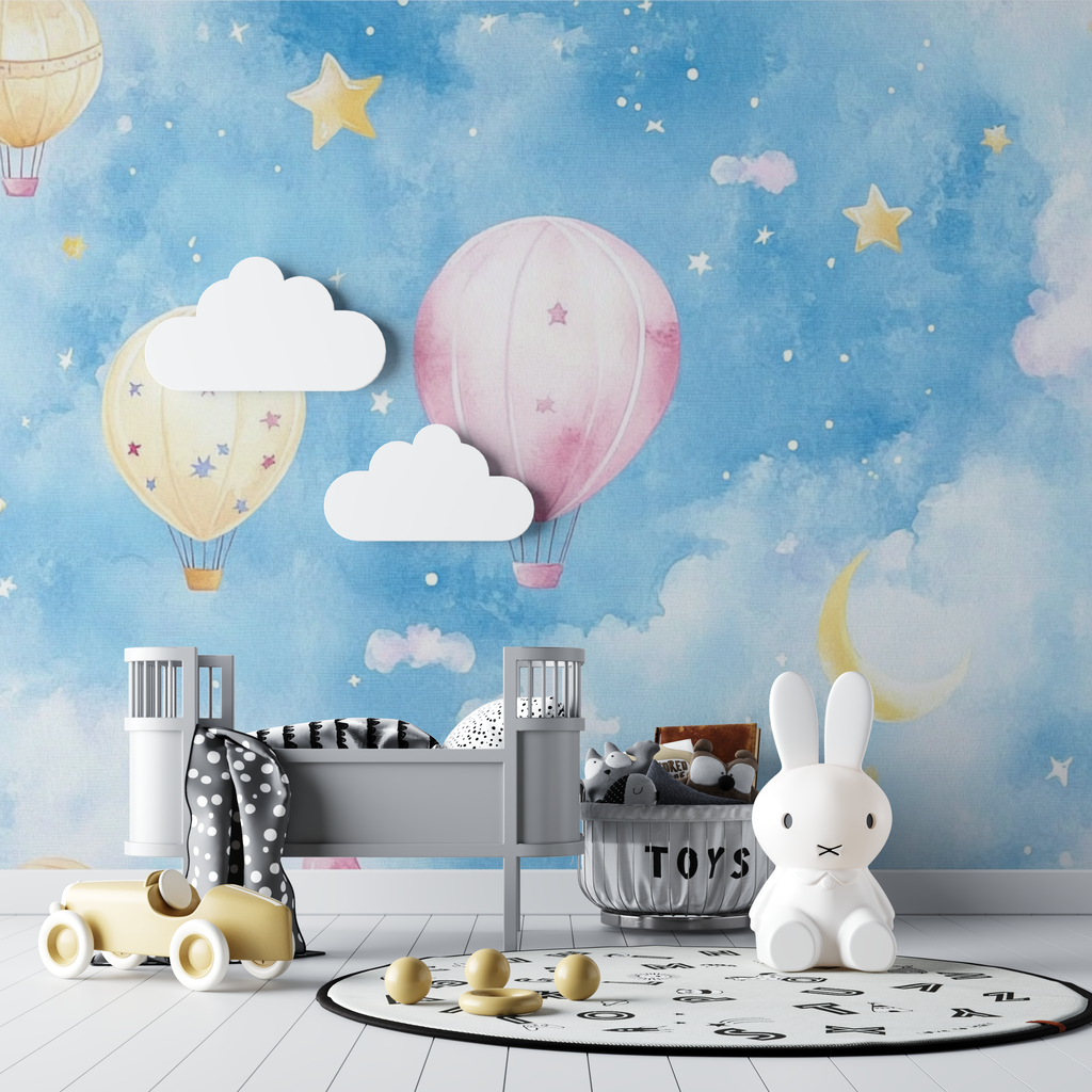 Comment le Papier Peint Montgolfière Et Étoiles Multicolores améliore votre espace?
