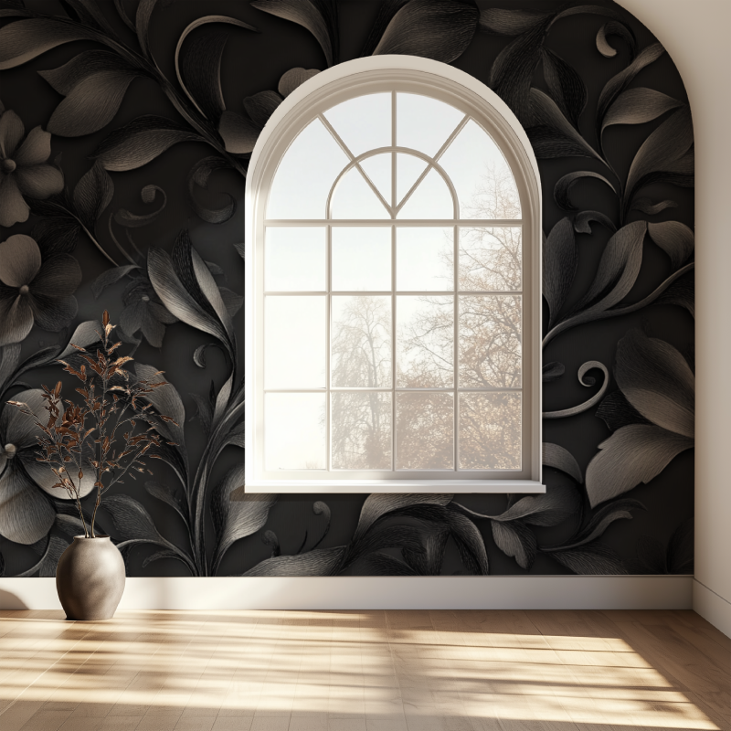 Les détails floraux en nuances de gris ajoutent une profondeur visuelle qui attire immédiatement l'œil. Ce papier peint capte la lumière de façon unique, permettant aux motifs de prendre vie de manière subtile mais marquante.