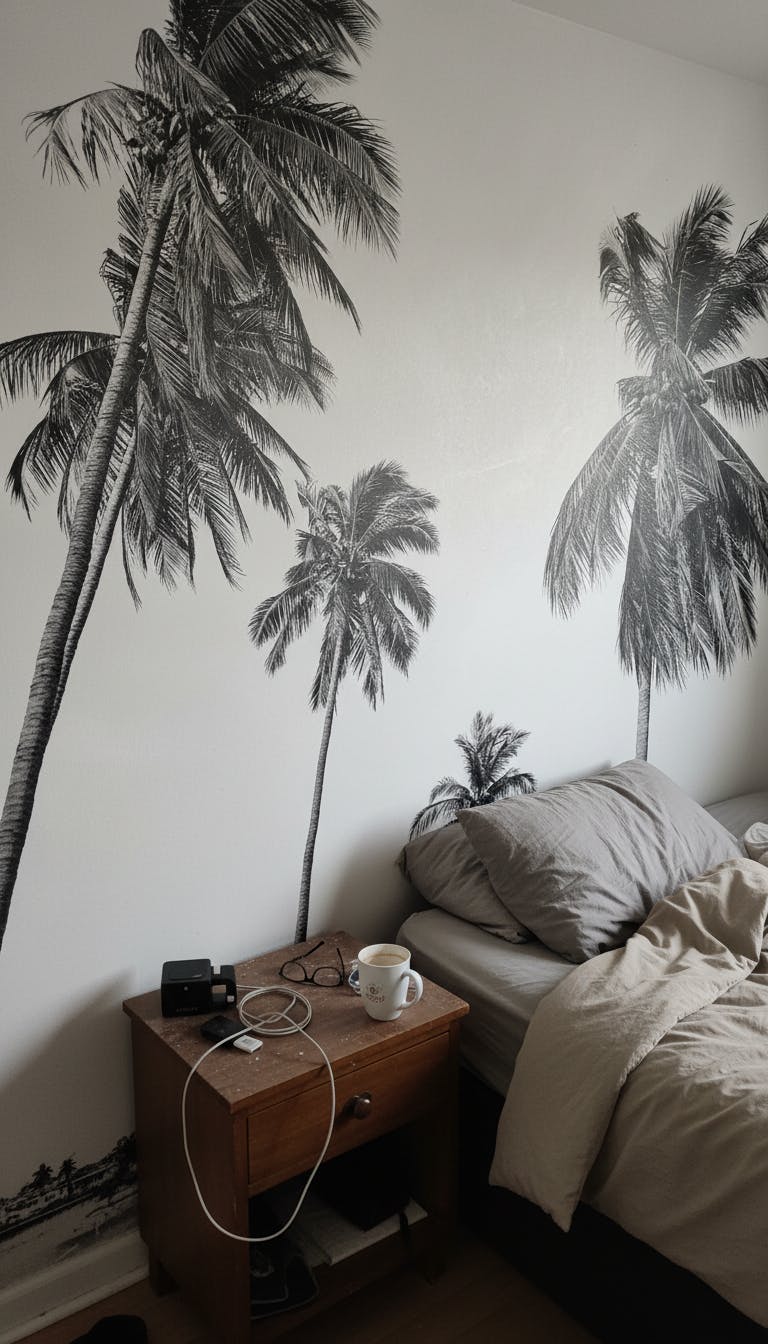 Élevez votre décor grâce à notre Papier Peint Panoramique Palmier Noir Et Blanc